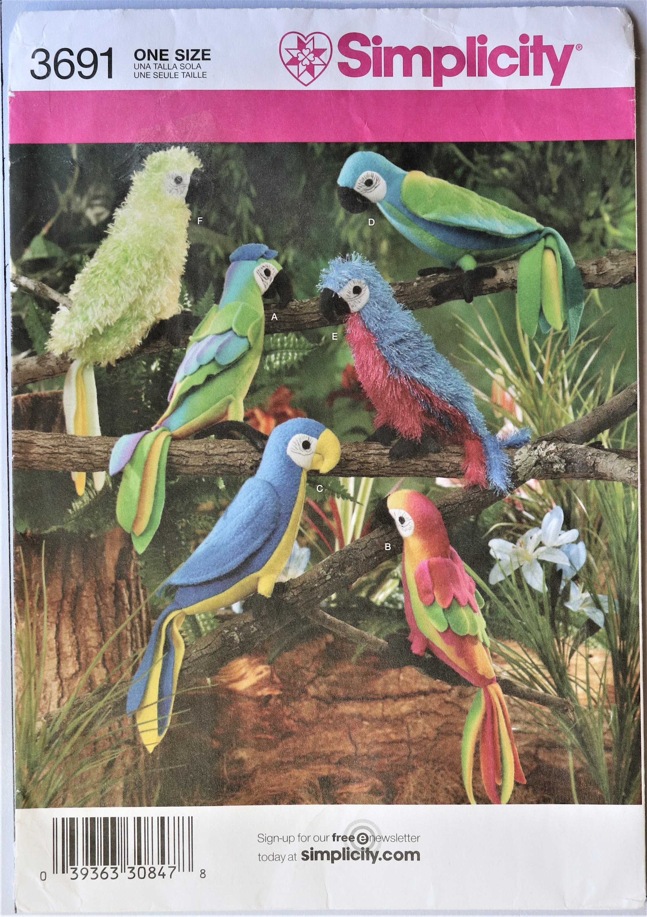 Simplicity 3691 Stuffed Parrots Pattern Fabric Parrots Etsy Australia